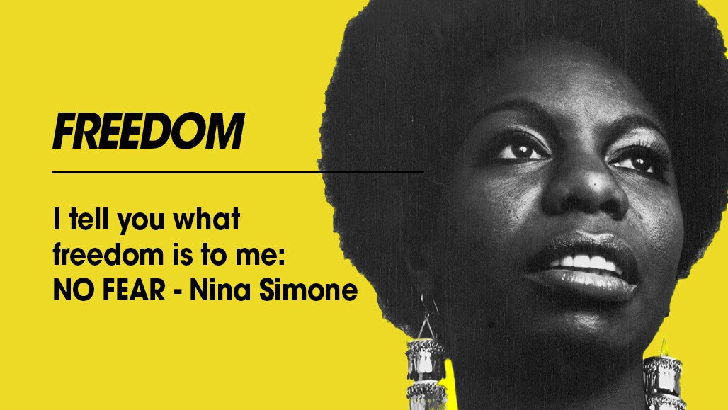 Candle in black glass pot with Nina Simone Freedom quoteBurns up to 40hrsScent: 'Tender Woods'